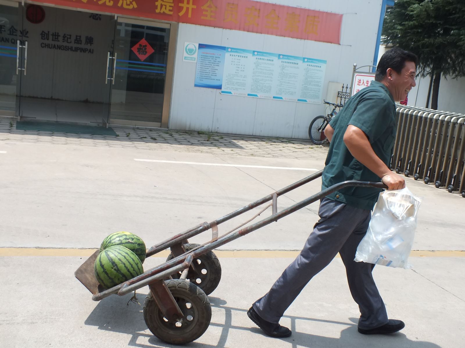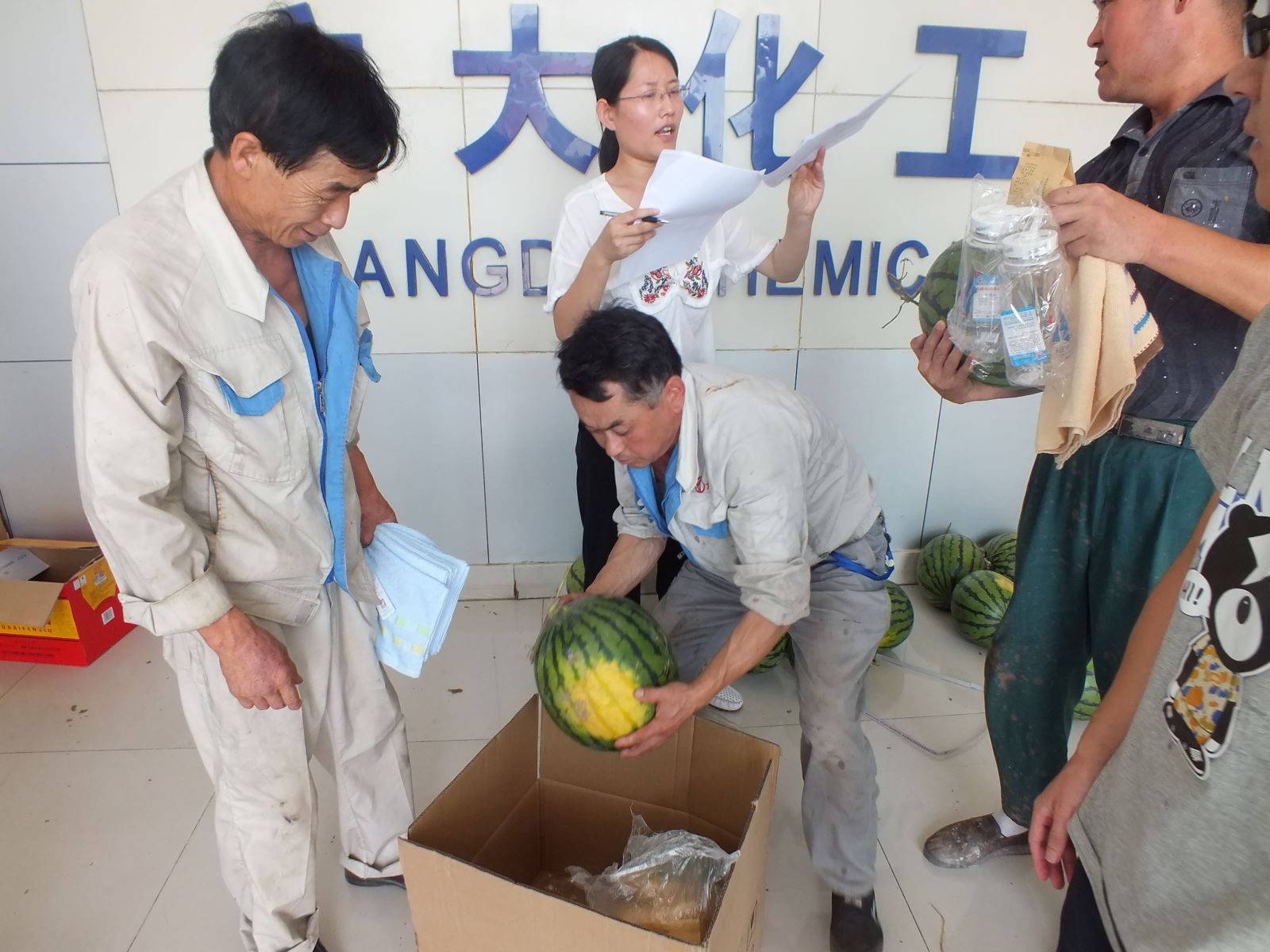 拿起手中的西瓜,每一位員工的臉上都綻放了幸福的笑容,一塊看似不起眼的西瓜,卻因為這里面蘊含著愛的溫度,讓他們忘記了炎熱與勞累,而那一張張笑臉也是對我們此次慰問活動最大的肯定!