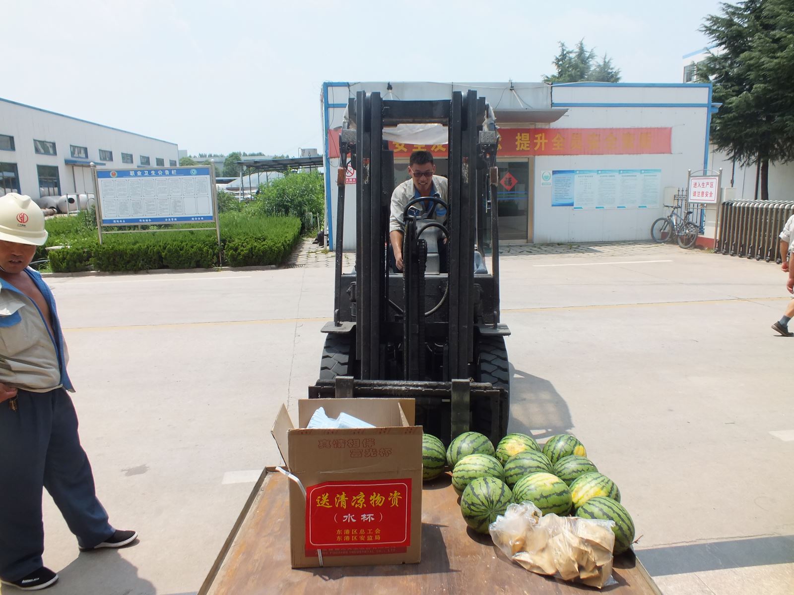“夏送清涼”慰問活動將關(guān)懷送至公司每一位員工,讓我們大家都深切感受到了東港區(qū)總工會和東港區(qū)安監(jiān)局領(lǐng)導(dǎo)送來的溫暖。另外,公司也提醒所有員工,要做好對炎熱天氣的防范工作,加強身體素質(zhì)和自我保護意識,安全度過炎炎夏日。